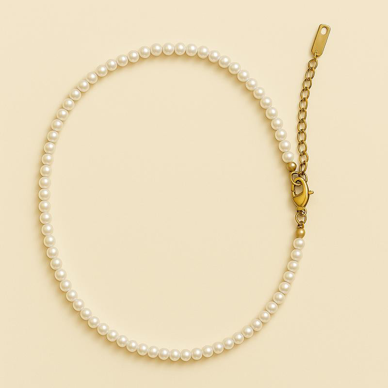 This freshwater pearl necklace is hand-strung with organic, uneven pearls to create a natural rhythm and texture. The adjustable length and knotted pearl chain design offer both fluid drape and styling flexibility. A refined pearl choker necklace that layers beautifully or stands alone as a minimalist pearl chain statement.
