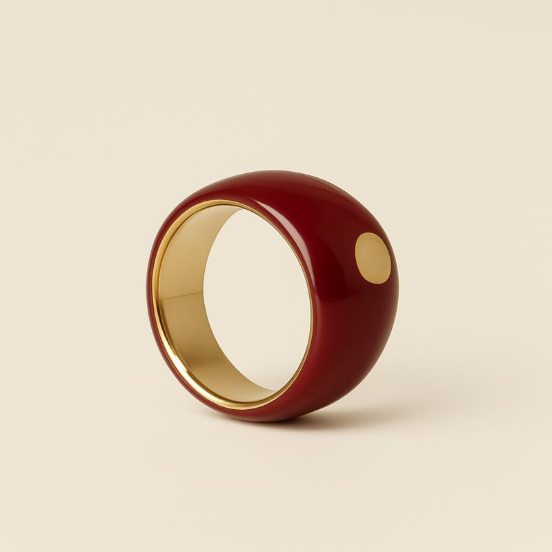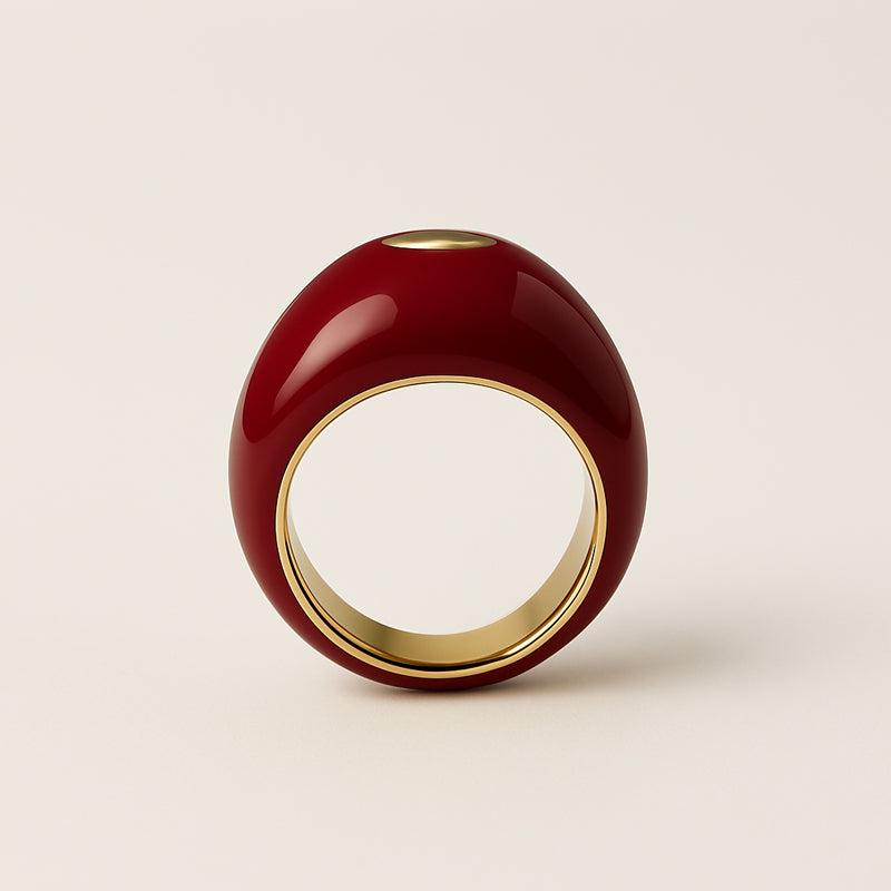 Crafted with vintage elegance in mind, this enamel ring combines a bold red glaze with gold enamel accents. The vibrant contrast between the glossy red enamel body and shimmering gold top makes it a standout statement in any enamel jewelry collection. Its chunky silhouette is perfect for solo wear or stacking with other rings. Designed to channel retro charm with modern flair.